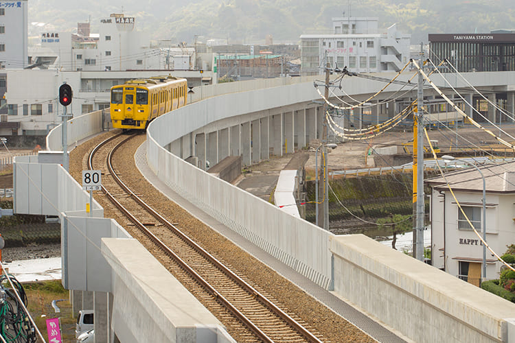 乗り心地や音に配慮し快適なインフラを整備 ロングレールの採用で列車が走る時の「ガタンゴトン」という音がなくなり「シャー」と静かな音になりました。周辺住民の方々から「静かになった!」と感謝されたことが嬉しかったですね。「他の線路も同じようにして欲しい」なんて声を聞くと誇らしくなります。高架を新設する際は、仮線をつくり既存の線路を撤去。高架が完成したら今度は仮線を撤去します。プロジェクトの進行で大切なのは横との連携。土木事業部門や建築事業部門と密に情報交換を図りスケジュールを確認しながら工事を進めていきます。指宿枕崎線の谷山高架工事を通じて、地元である指宿に間接的に貢献できたことも嬉しく感じています。